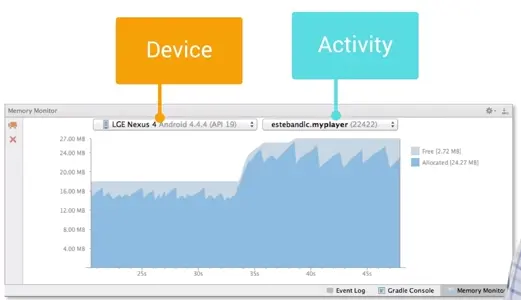 为了寻找内存的性能问题,Android Studio提供了工具来帮助开发者。