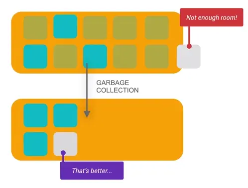 瞬间产生大量的对象会严重占用Young Generation的内存区域,当达到阀值,剩余空间不够的时候,也会触发GC。即使每次分配的对象占用了很少的内存,但是他们叠加在一起会增加 Heap的压力,从而触发更多其他类型的GC。这个操作有可能会影响到帧率,并使得用户感知到性能问题。