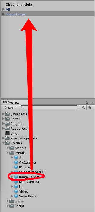 删掉ImageTarget 下原有的Video(这是用来识别视频的,以后的开发中会用到)