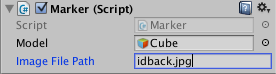 接着导入一张识别图,为了方便测试,我们到网上下载一张身份证并导入(命名为idback)注意:jpg格式的。然后修改Imagetarget里面的参数