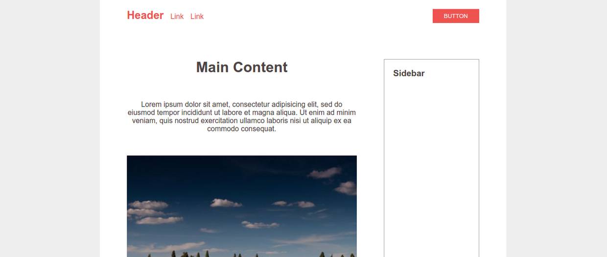 现在我们需要使主要内容部分和侧边栏彼此相邻。由于 Flex 容器通常是单向的,所以我们需要添加一个包装器元素。