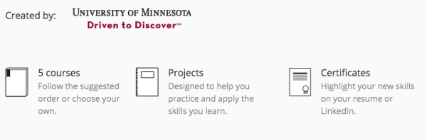 这个课程在 2016 年秋天由密歇根大学的信息学院首次发布于 EdX 。如果要在修完这门课程之后获得由密歇根大学认证的「 毕业证书」的话,那么这门课程的售价就是 1041 刀。假如不需要认证证书的话你也可以免费参与到这门课程里面来,资料教材什么的,一样也不会少。