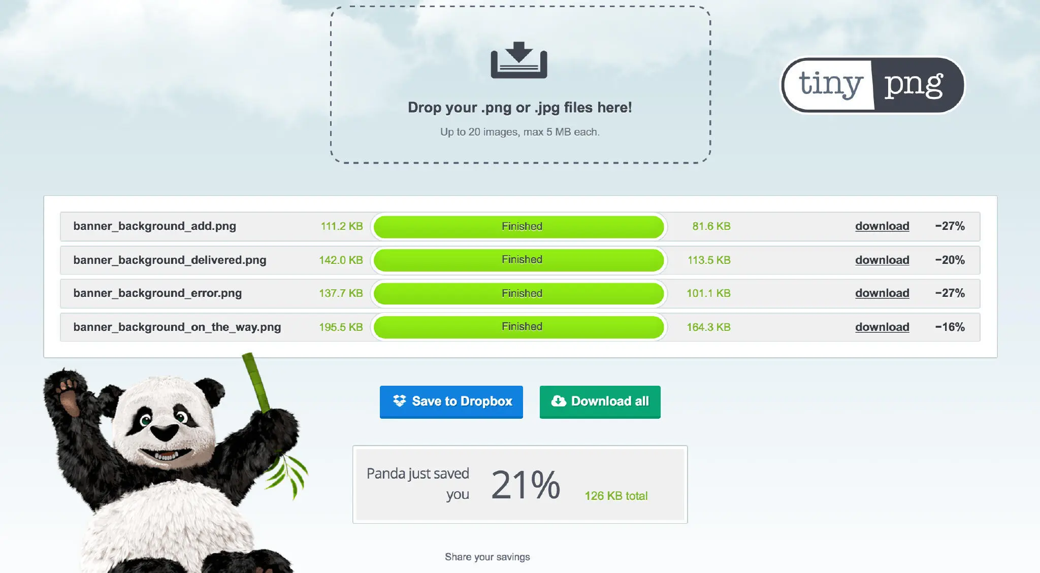 我们先使用TinyPng对项目中四张比较大的图片进行压缩,可以看出,效果还是非常不错的。