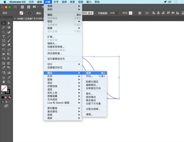 用「直线段工具」分别连接曲线两端(锚点必须严格对齐):