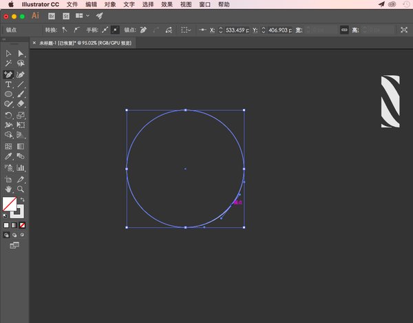 画个圆,在圆的左下半弧上用「添加锚点工具」加个锚点: