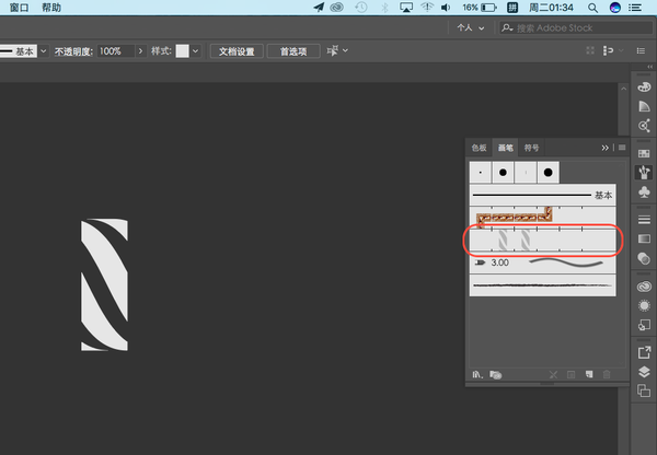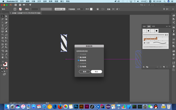「画笔定义」选择之前做好的「图案画笔」,调整「描边粗细」至合适的值,继续调整路径使其和谐: