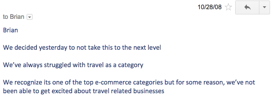 相当一部分看起来很糟糕的点子最后却造就了一些伟大的公司。 比如,当年没人想投资 Airbnb。 Brian Chesky, Airbnb 的创始人之一,在他的文章 7 Rejections 里详细讲述了被投资人拒绝的故事。