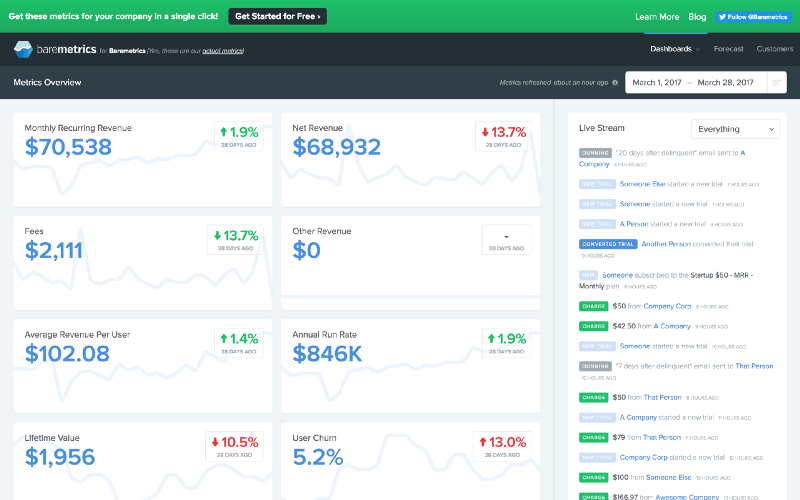 在一个 IndieHackers 的采访中, Josh Pigford 透露,在做 Baremetrics 之前,他已经尝试过 一百个 失败的点子。 然而现在, Baremetrics 每个月都会有 60,000 美金进账。