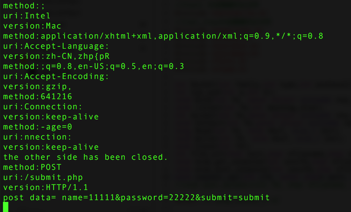 通过read(fd, data, contlen);就可以获取到post请求的内容,截图为