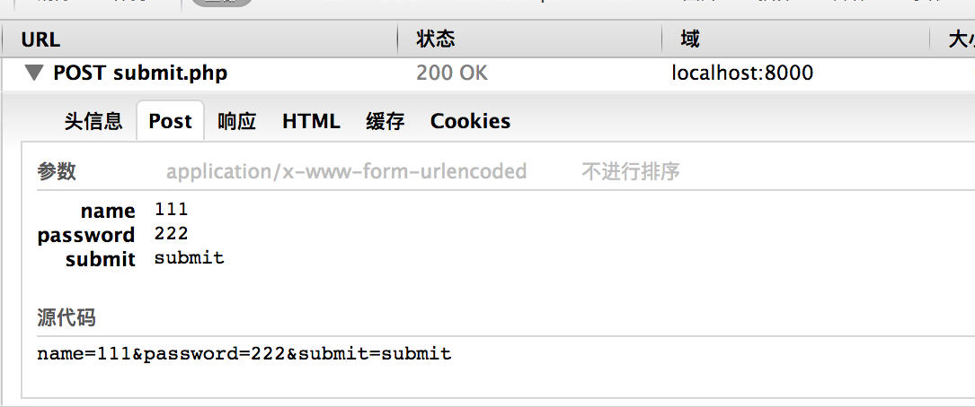 我们在2个输入框输入一些字段,然后通过firebug-网络查看post内容