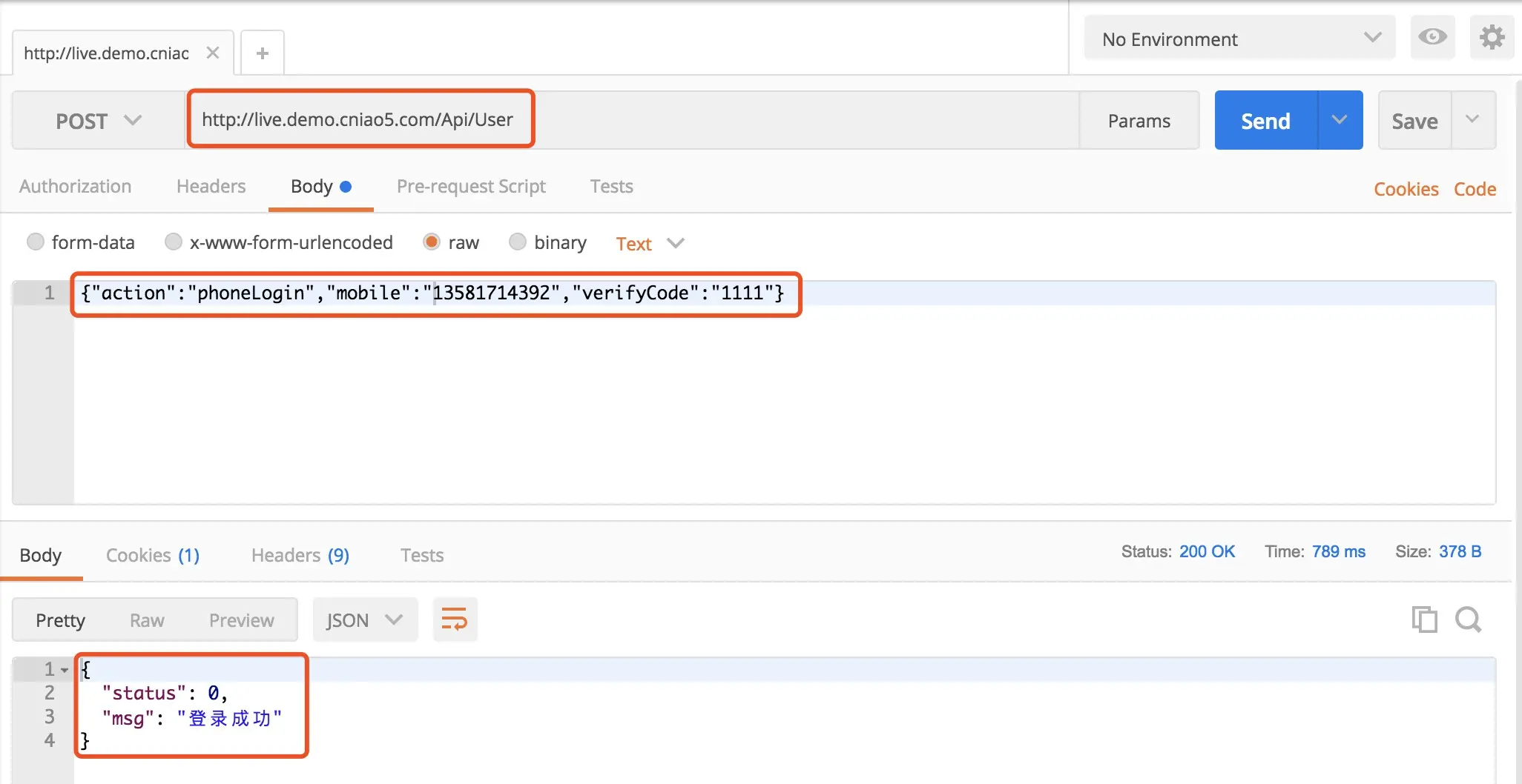 手机号登录先来测试网络数据API,看看实体类需要的数据。请求参数有登录方式 action,手机号 mobile 和 验证码 verifyCode。