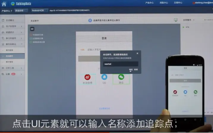 为要统计的界面元素命名事件,添加追踪点,至此埋点操作完成: