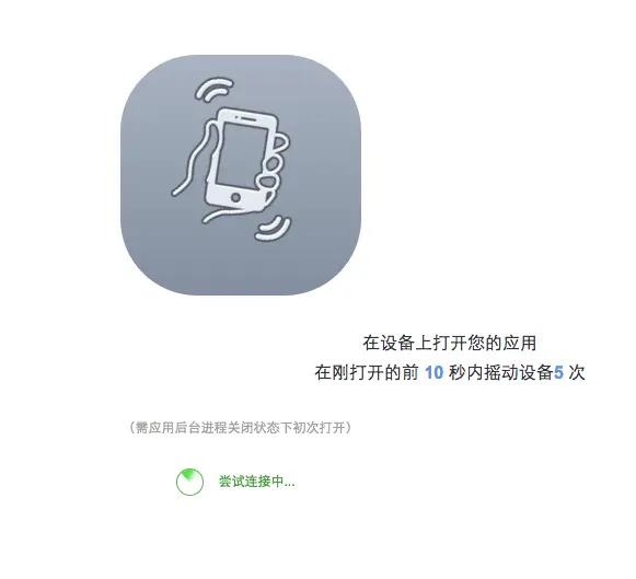 项目嵌码之后,进入可视化链接页面,摇一摇连接设备: