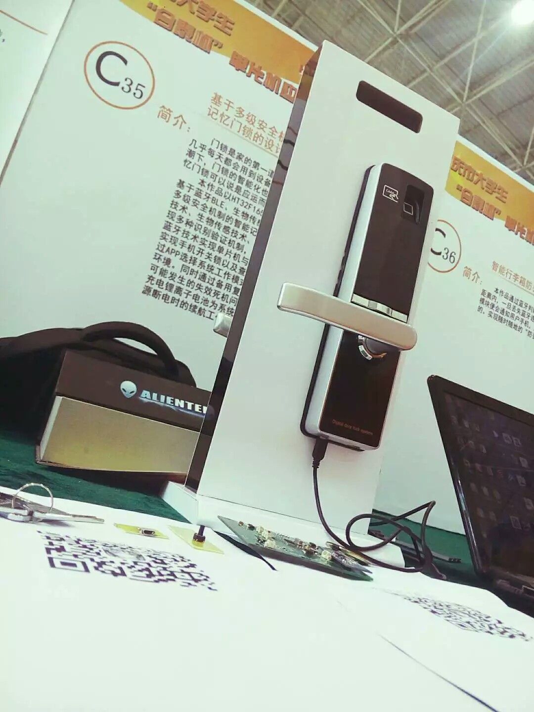 该智能锁除了外壳之外,均是几个小伙伴一同安装和调试出来的,从机械结构到程序开发,一起熬了一周,直到参加比赛答辩的前一个多小时,我们遇到了一个致命的 BUG 不知如何是好,紧急调程序、拆卸、重新安装,似乎完全忘了我们是连续熬了四五个晚上的通宵,庆幸的是现场演示的一整天和答辩的过程中设备和程序未出现任何问题,也拿下了该比赛重庆市一等奖和最佳 MCU 程序设计奖,比赛前那几个小时,说真的都想过直接放弃,但是最后还是坚持下来了,感谢锲而不舍的小伙伴,现在虽然接近毕业,这个作品也是一年前的作品,但是我还是想写出来,最主要的不是为了分享技术,而是想说对技术的坚持。