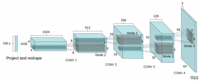 构造一个基于深度学习的 G(z)有很多种方式。原始的 GAN 论文提出了一个想法, 一个训练过程,以及一个初步的实验结果。这个想法已经被极大地发扬了,其中一个想法在论文“基于深度卷积生成对抗网络的无监督表征学习(Unsupervised Representation Learning with Deep Convolutional Generative Adversarial Networks)”中提出,作者是 Alec Radford, Luke Metz, 和 Soumith Chintala, 发表在 2016 International Conference on Learning Representations (ICLR, 读作 “eye-clear”)上。这篇论文提出了深度卷积GANS(叫做DCGANs),使用微步长卷积来对图像进行上采样。