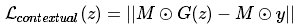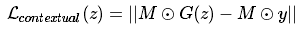 语境损失:为了得到和输入图像相同的上下文,需要确保y已知像素对应位置的G(z)尽可能相似。所以,当 G(z)的输出和 y 已知位置图像不相似的时候,需要对G(z)进行惩罚。 为此,我们用G(z)减去 y 中对应位置的像素,然后得到它们不相似的程度: