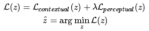 最后,将语境损失和感知损失组合起来,就可以找到