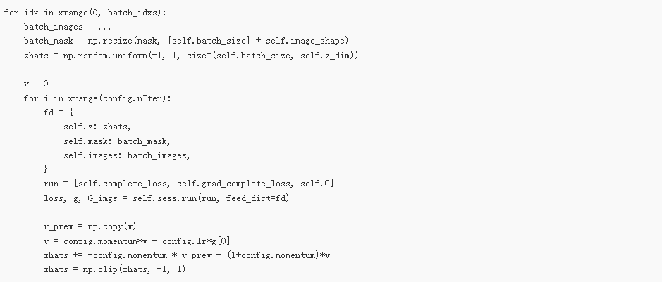 model.py:https://github.com/bamos/dcgan-completion.tensorflow/blob/master/model.py