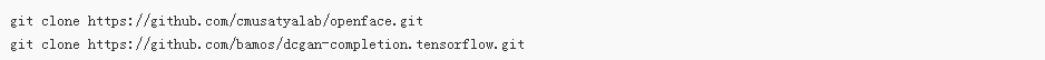 首先,clone 我的 bamos/dcgan-completion.tensorflow Github库 和 OpenFace 到本地。我们要用到 OpenFace 的 Python-Only 部分来进行图像预处理。 别担心,你不需要安装OpenFace 的 Torch 依赖。 创建新目录, clone 下面的资源库。