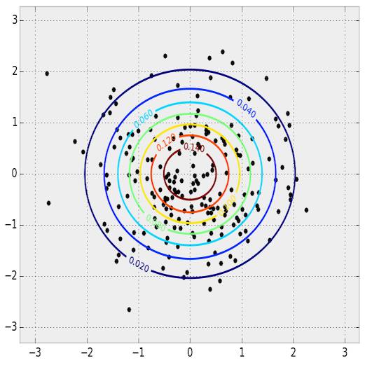 从正态分布的样本来看,只通过样本,我们就可以得出PDF。只需挑选你喜欢的 统计模型, 然后拟合数据即可。