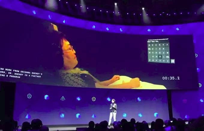 “如果你可以控制你的大脑,用‘意念’直接打字,会怎么样?” Dugan在演讲的开头问道。随后,她展示了一段斯坦福大学实验室成功让一个瘫痪的病人用大脑直接打字的录像。在录像中,因为病人脑中植入了传感器,传感器可以准确传播病人脑中的想法。但是,她进一步强调,Facebook将在避免植入传感器的情况实现相同的效果。
