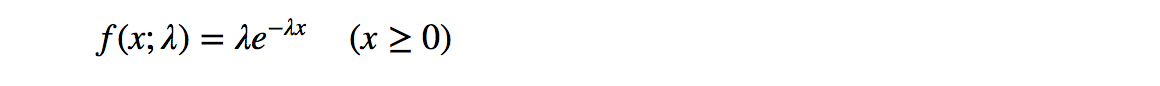 指数分布用以描述独立随机事件发生的时间间隔,这是一个连续分布,所以用质量密度函数表示: