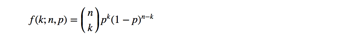 二项分布是n个独立的是/非试验中成功的次数的概率分布,其中每次试验的成功概率为p。这是一个离散分布,所以使用概率质量函数(PMF)来表示k次成功的概率: