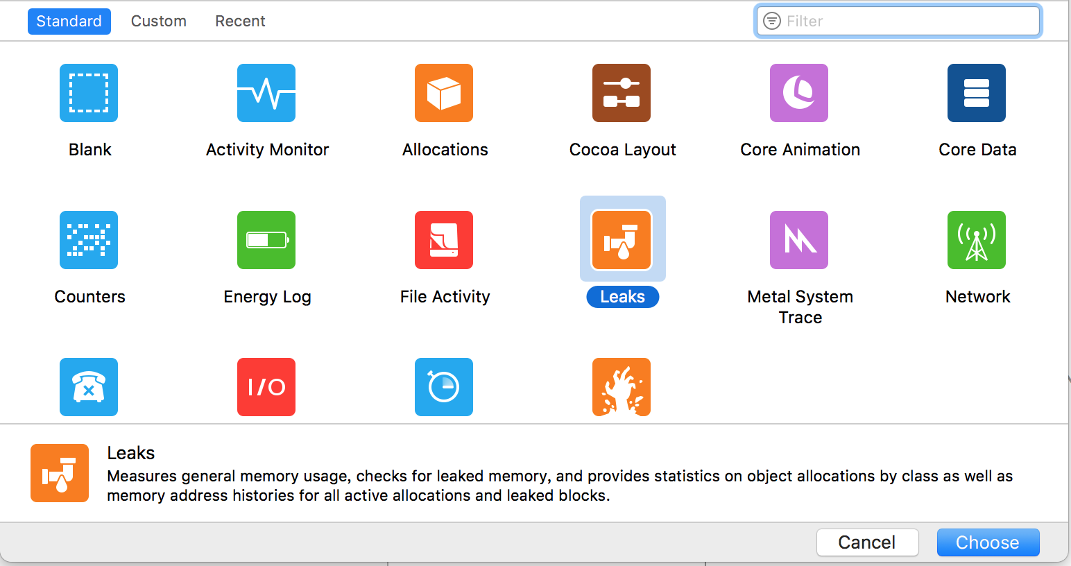 1、借助Xcode自带的Instruments工具(⚠️选取真机测试)