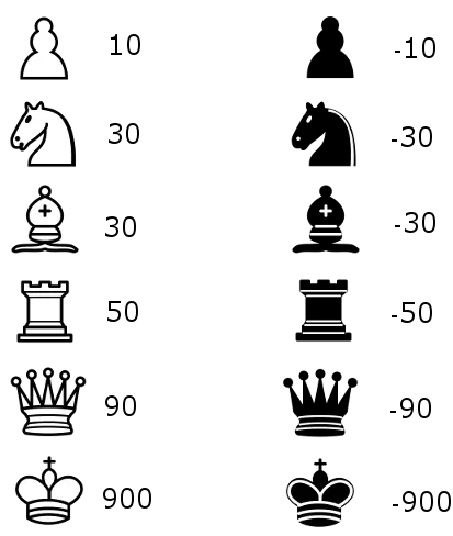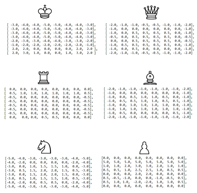 我们来稍微调整一下棋盘上棋子状态的权重,这一图表是在国际象棋程序维基百科中给出的。
