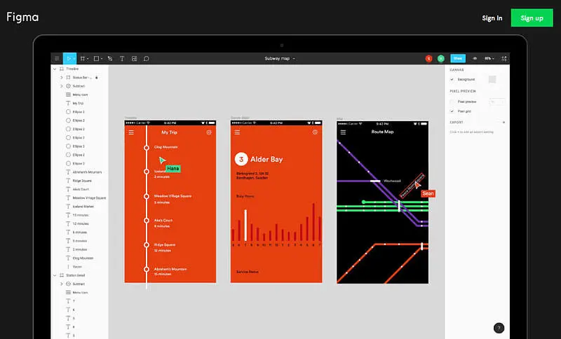 使用者也可以同时进行工作,你能看到发生了什么,是谁在操作。另外,这个工具包含了用于向团队或客户展示想法和呈现评论的模式。Figma对于专业团队来说都已经足够强大,同时它也可以让初学者轻松地使用。