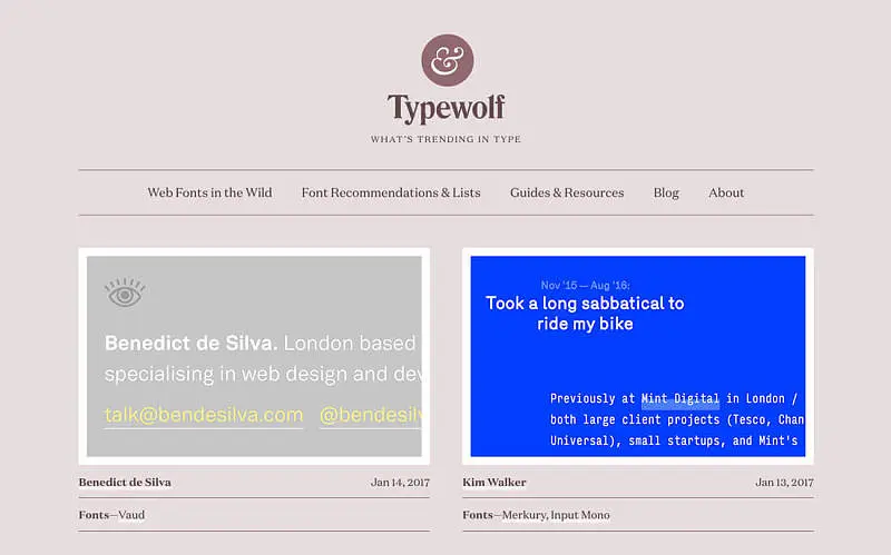 Typewolf一个囊括了世界上所有最新的、流行的和有趣字体的资源型网站。博客风格便于阅读,并且展示出了你所需要最好的字体示例。