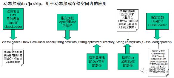 插件应用程序是运行在插件框架这个中间层上面的,而非直接运行在android系统里的。也正因为如此,插件框架就需得自己去完成应用程序包的内容加载以及组件的生命赋予工作。