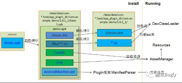 插件应用程序要能够运行在宿主里面,首先得经过安装这个过程让宿主知道当前这个插件应用的信息,然后插件框架就会将当前插件解压拷贝到指定目录以便后面的运行需要。