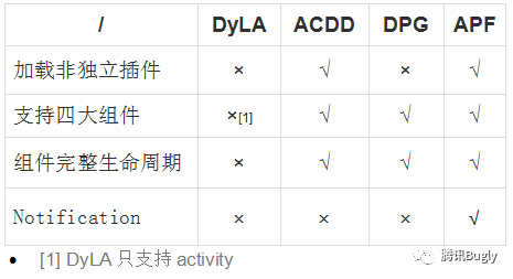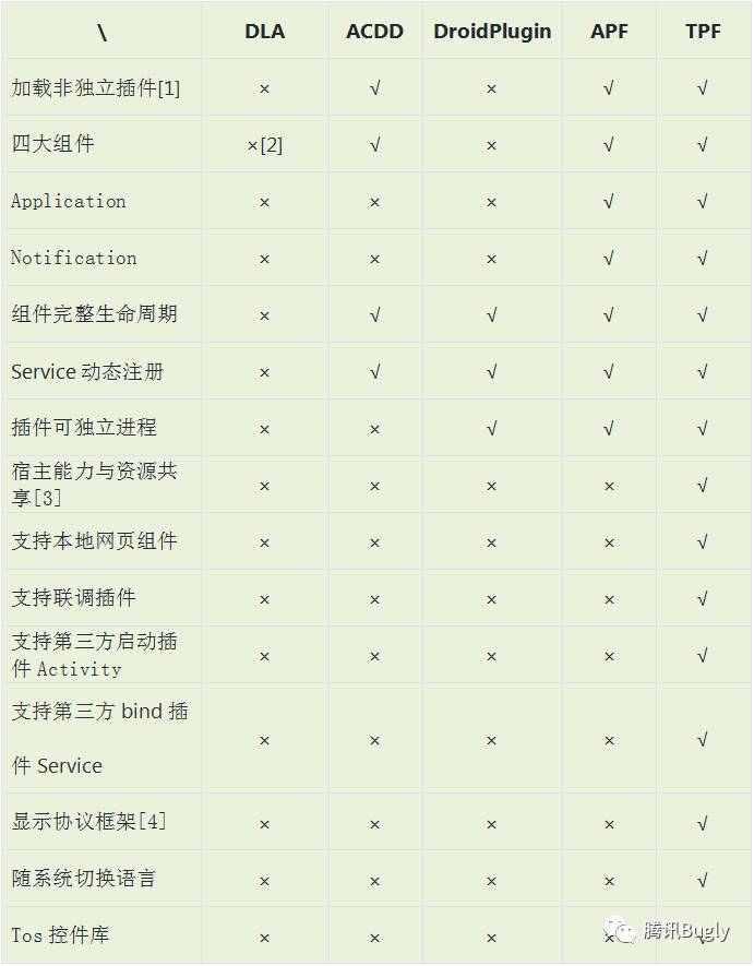 这套框架相比业界其他插件框架能力对比如下: