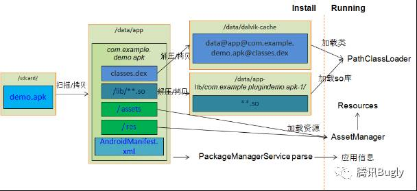 应用程序的安装有android系统负责完成,而插件应用的安装流程由插件框架负责完成;