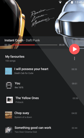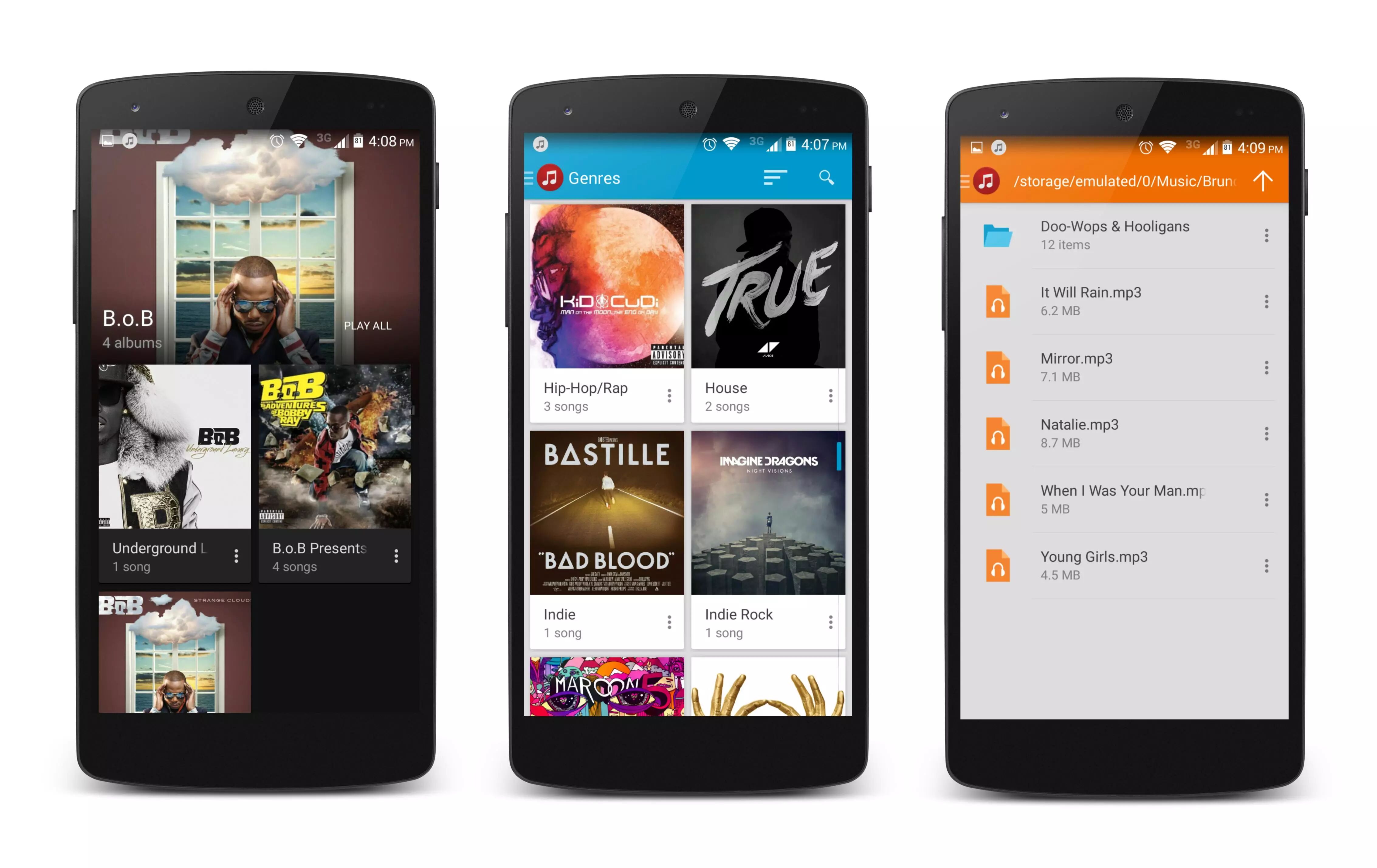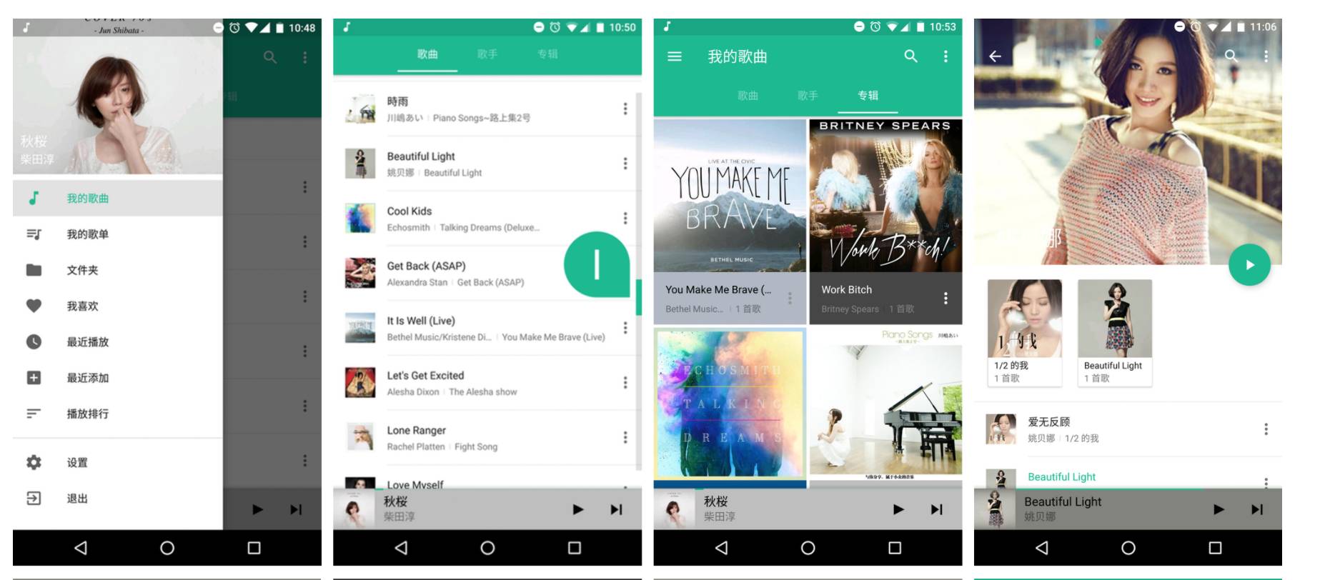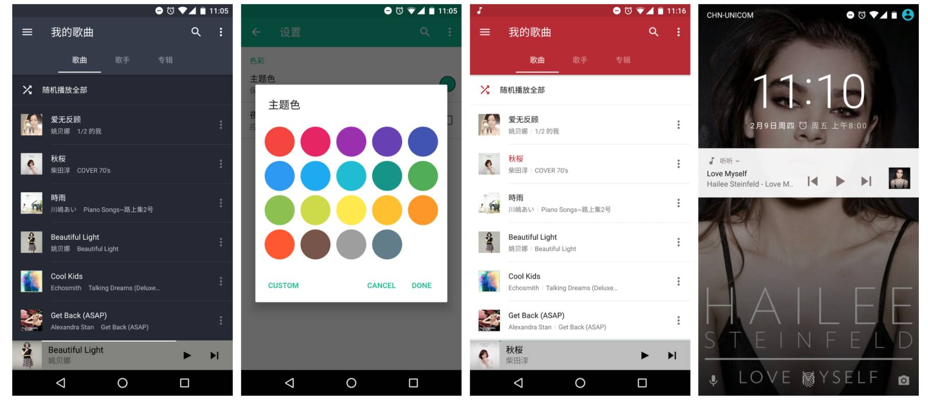 一个Material Design 风格的音乐播放器包含浏览歌曲,专辑,艺术家,创建和编辑播放列表播放,黑暗的主题和用户界面的定制性,Android Wear和Android汽车支持!