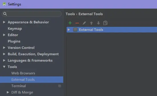 还是打开设置界面,找到 Tools 这个目录,找到 External Tool,点击 + 新建一个 External Tool
