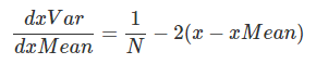 同样的对于方差部分,我们可以得到dx_var 2.0/N (x-x_mean)