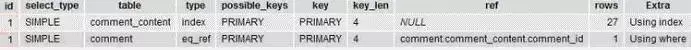 explain select c.title, cc.content form comment_content cc, comment c where cc.id=c.id