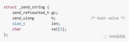 PHP中字符串通过zend_string表示:
