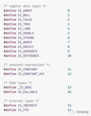 zval.u1.type类型:
