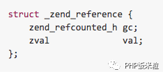 引用是PHP中比较特殊的一种类型,它实际是指向另外一个PHP变量,对它的修改会直接改动实际指向的zval,可以简单的理解为C中的指针,在PHP中通过&操作符产生一个引用变量,也就是说不管以前的类型是什么,&首先会将新生成一个zval,类型为IS_REFERENCE,然后将val的value指向原来zval的value。