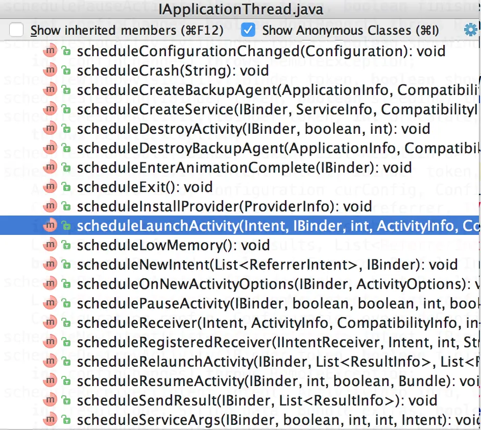 1:我们找到IApplicationThread的接口截图: