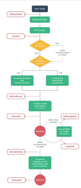 - updata: 当数据发生改变时,会重新渲染 DOM。