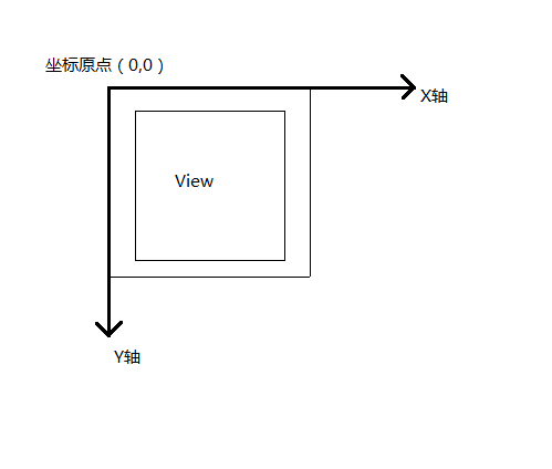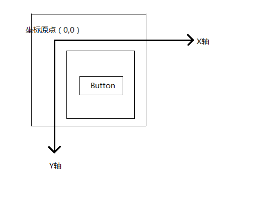 Android中除了上面所说的这种坐标系之外,还有一个视图坐标系,它描述了子视图在父视图中的位置关系。这两种坐标系并不矛盾也不复杂,他们的作用是相互相成的。与Android坐标系类似,视图坐标系同样是以原点向右为X轴正方向,以原点向下为Y轴正方向,只不过在视图坐标系中,原点不再是Android坐标系中的屏幕最左上角,而是以父视图左上角为坐标原点,如下图:
