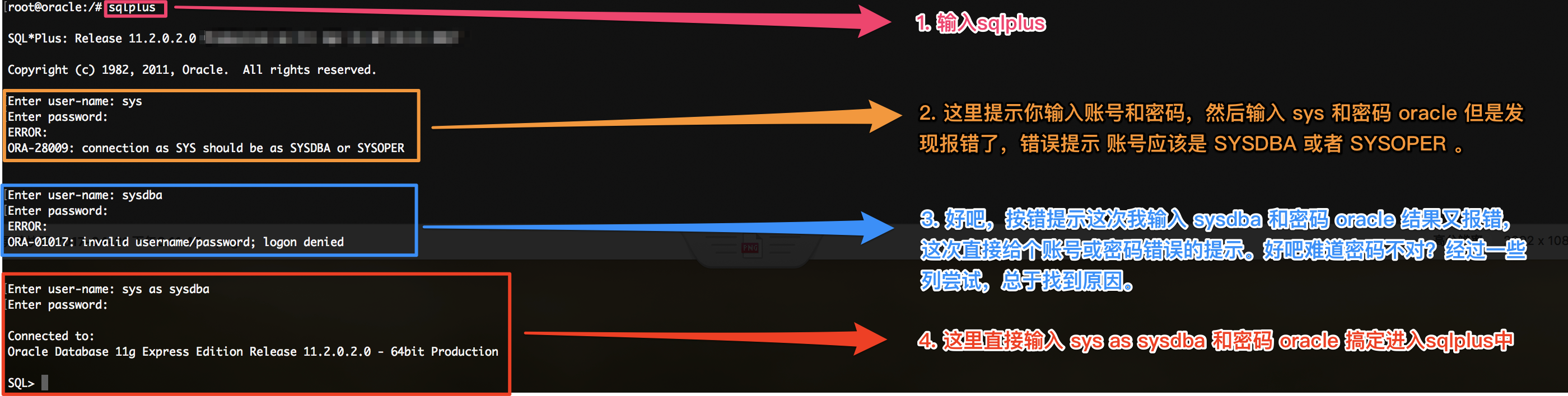 Oracle中的root用户后,在连接sqlplus。- Oracle有两个用户
