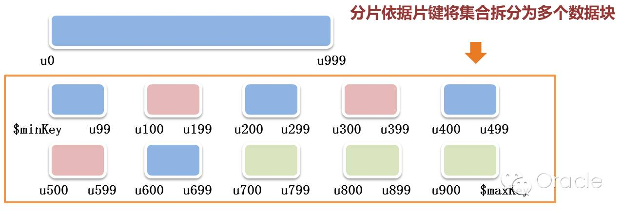 在选择片键进行分片之后,集合被拆分成为多个数据块儿,这时候第一个块和最后一个块儿中将出现 $minKey 和 $maxKey,分别表示负无穷和正无穷,当然这都是 MongoDB 分片内部使用的,我们只要了解即可。