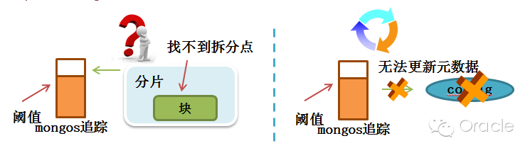 拆分块儿的过程也是有隐患的,比如找不到拆分点而导致产生特大块儿,还有配置服务器不可达导致拆分风暴等。