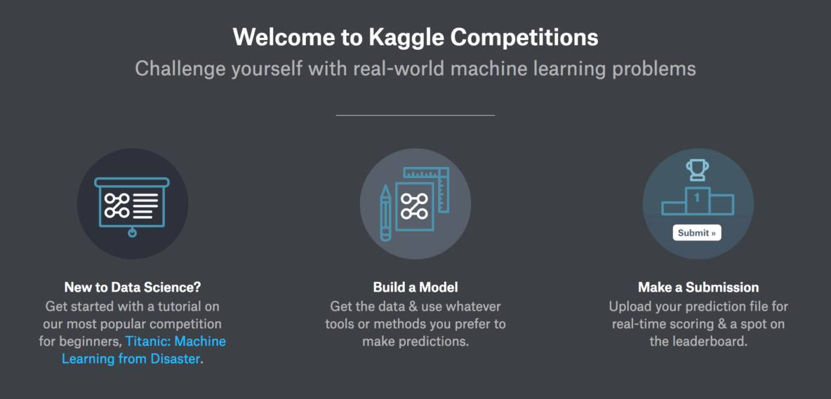 没有发现问题?被担心!我们通过入门竞赛系列在 Kaggle 上提供了一些很好的机器学习问题。点击 Titanic 竞赛(https://www.kaggle.com/c/titanic)开始。
