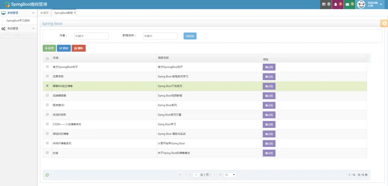 最终项目效果如下,增删改查分页一个都不少: